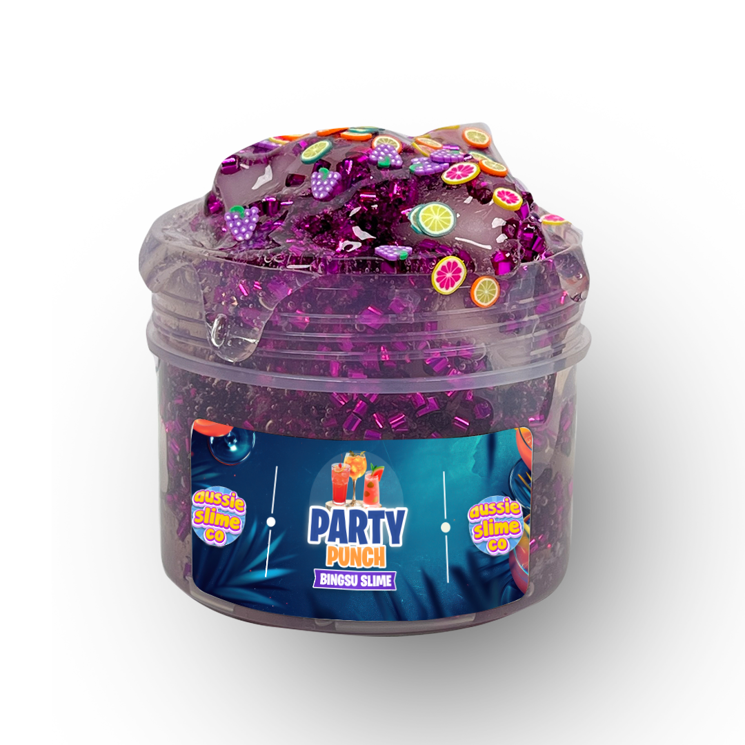Let the party begin with our Party Punch Slime! This Dark pink vibrant slime is bursting with color and texture, featuring a mix of fruity Fimo and a refreshing fragrance. The texture of this bingsu slime provides a fun tactile experience making it a perfect addition to your slime.